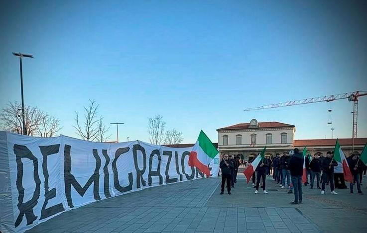 Non si tratta di una coincidenza ma di un disegno di radicamento territoriale e convergenza operativa. Da fine 2024, la Rete dei Patrioti e Casapound, insieme al Veneto Fronte Skinhead (storica costola del network neonazista Blood & Honour), uniti nel Comitato Remigrazione e Riconquista, promuovono una legge di iniziativa popolare per politiche di deportazione di massa di migranti via incentivi ai rimpatri volontari e soprattutto rimpatri forzati – come già l’ICE negli Stati Uniti. Insieme alla proposta istituzionale c’è poi quella ‘di strada’, che nel programma di Casapound implica la “riconquista integrale degli spazi urbani abbandonati al degrado”. Luca Marsella, dirigente nazionale di Casapound e portavoce del Comitato, presenta la proposta nell’evento di lancio a Brescia intervistato da Telecolor TG il 15.11.2025: